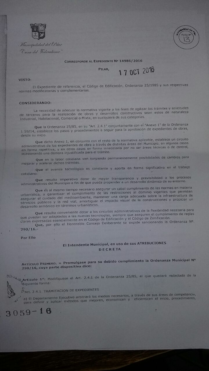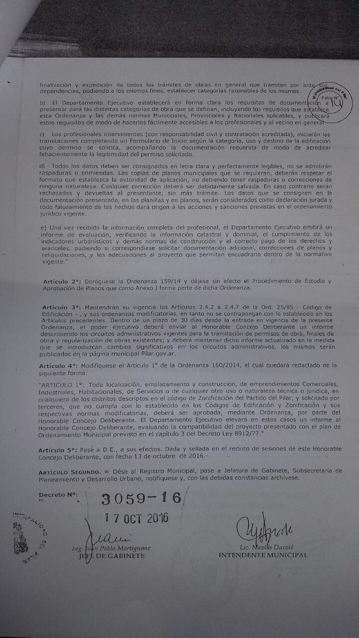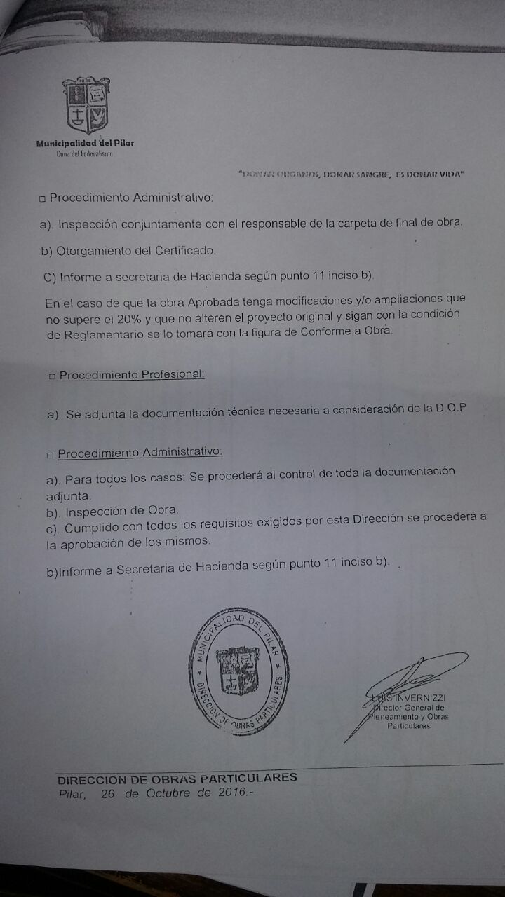 Con fecha del 17 de octubre (cuando se hizo peronista), el actual Jefe Comunal Nicolás Ducoté traspaso las facultades de recaudación de la aprobación de planos y demás, de Hacienda al área de Obras Particulares y Planeamiento. Allí a cada uno de los contribuyentes los espera con los brazos abiertos Luis Invernizzi, cuñado de Cariglino, acompañado por Andrés Biolcati.