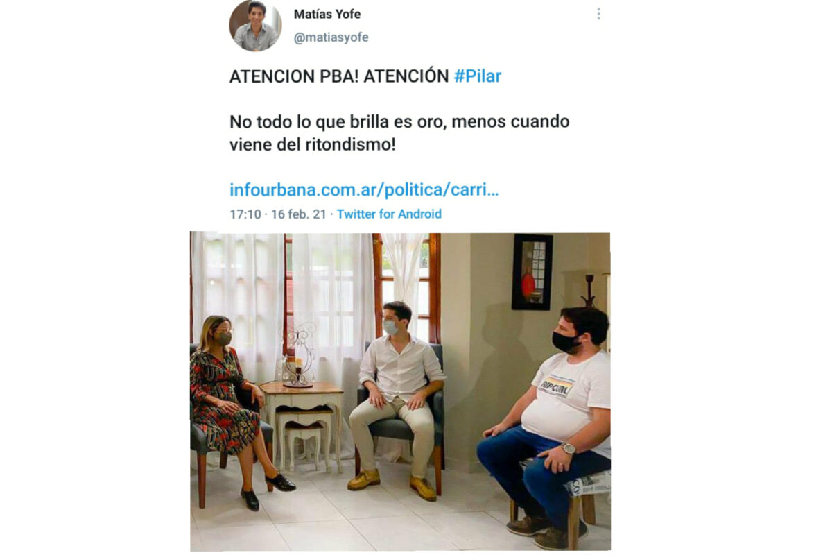 Es el hijo no deseado ni por parte de Nicolás Ducoté ni por Adriana Cáceres. Sin embargo en su pensamiento, Matías Yofe aún continúa creyendo que sus apariciones mediáticas lo catapultarán a una candidatura para concejal en este 2021. Ahora intentó sumarse a las críticas que realizó Elisa Carrió a los «referentes peronistas» de Juntos por el Cambio, Cristian Ritondo y Emilio Monzó. ¿Quién se hará cargo de esta creación poco valorable para la política local?